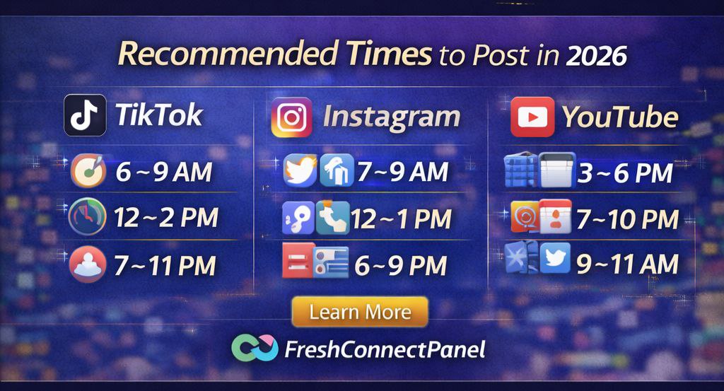 This guide reveals the best posting times for TikTok, Instagram, and YouTube, explains why timing affects reach, and shows how FreshConnectPanel helps creators strengthen early engagement for maximum visibility.