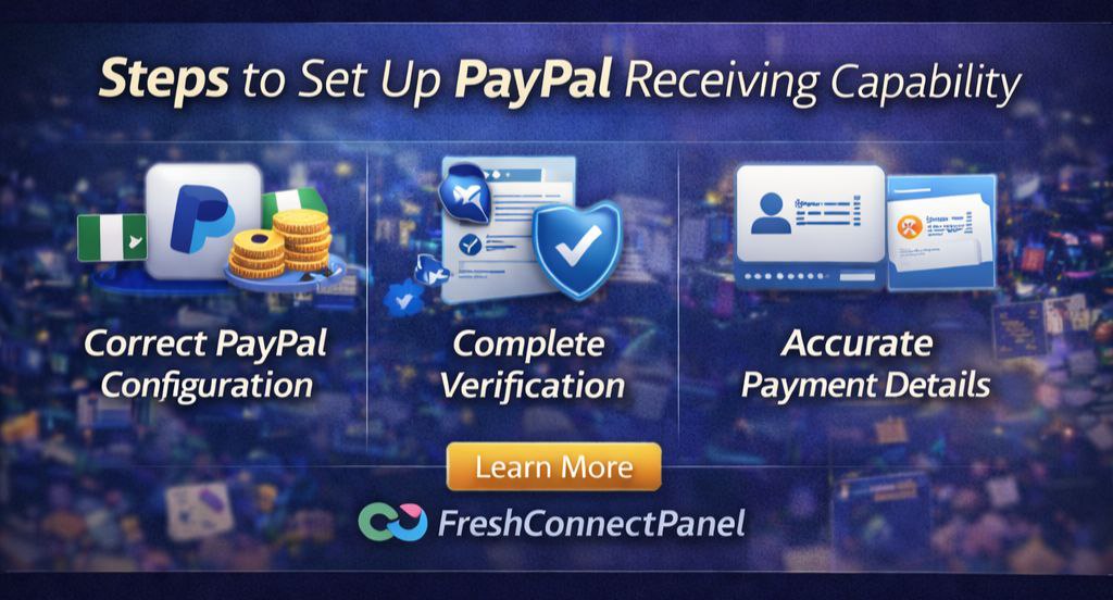 Understanding how PayPal receiving works in Nigeria is essential for anyone earning online. This guide explains the correct setup, common obstacles, and safe solutions—while also showing how FreshConnectPanel supports users who need professional PayPal assistance.