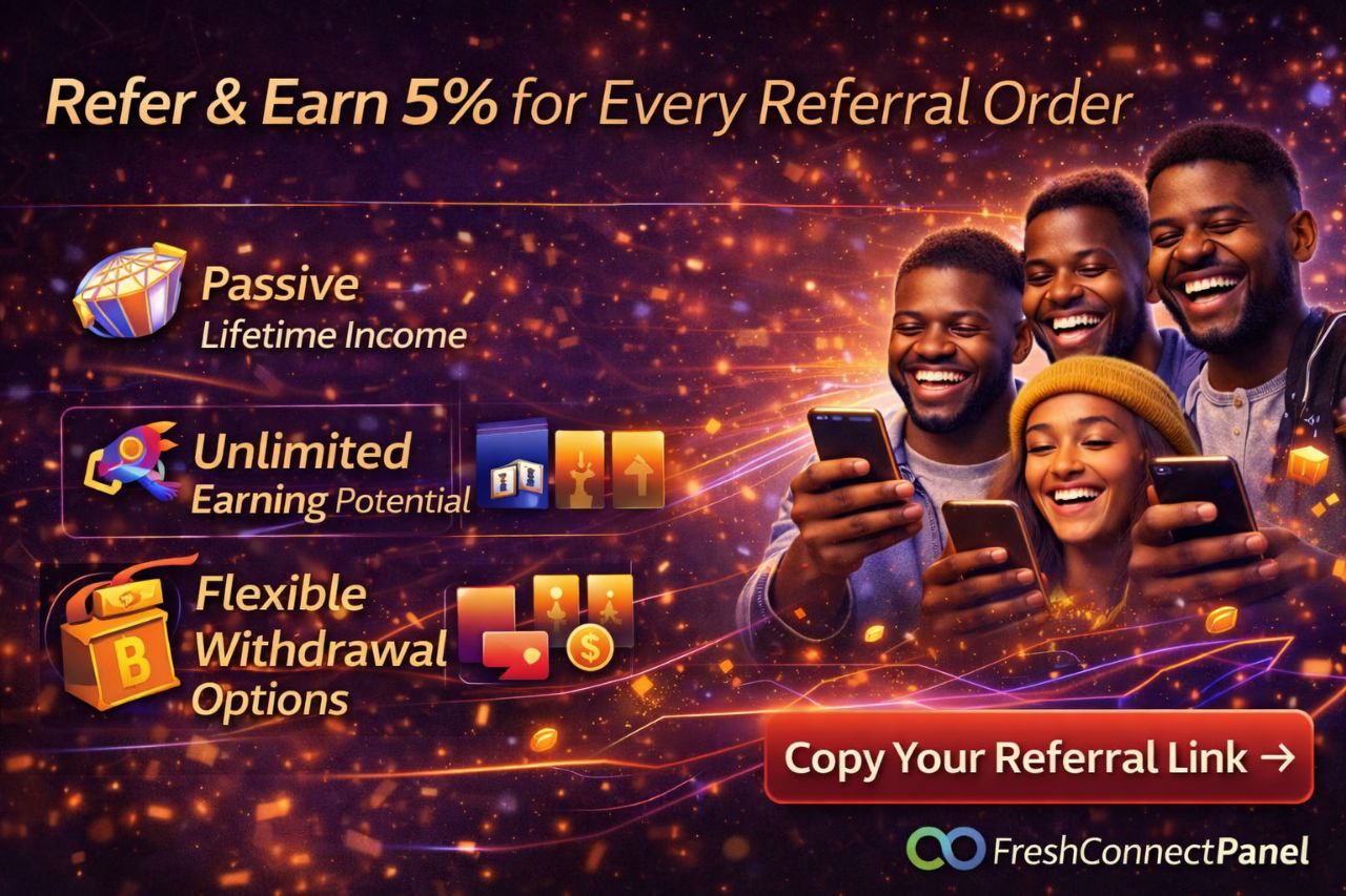 Invite your friends to join FreshConnectPanel using your unique referral link and earn 5% commission on every order they make for life.